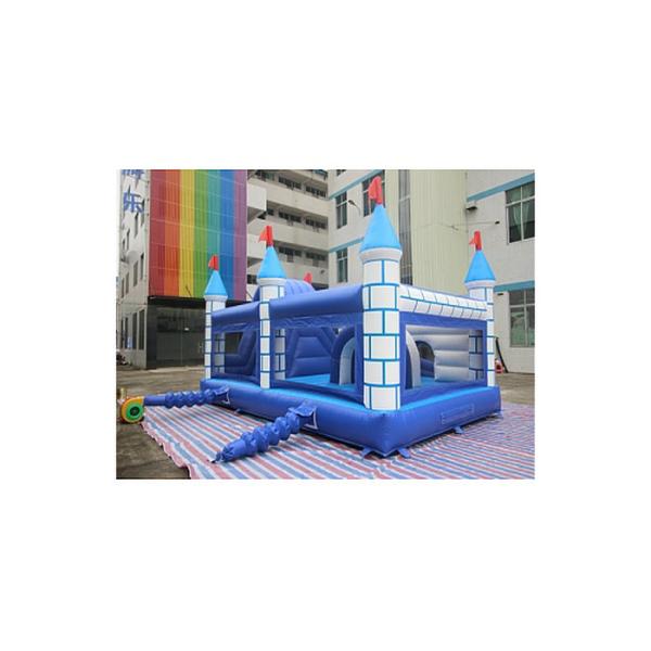 Blue And White City Wall Inflatable Bounce Combo With Slide / Backyard Jumping Castle Images |